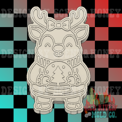 Winter Reindeer holding a snow globe Silicone Freshie Mold
